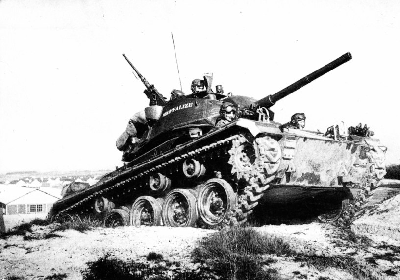 Nous apprenons donc qu’il s’agit d’un M 24 Chaffee, char léger produit par les États-Unis et utilisé pendant la bataille des Ardennes avec le 740th Tank Battalion de l’US First Army, puis dans les conflits d’après-guerre comme la guerre de Corée.