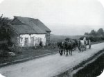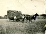 Carte envoyée de Filly le 25 janvier 1916. Elle est prise devant la maison « Peraux » à l’époque, « Balthazard » aujourd’hui. Les chevaux sont attelés à un instrument agricole connu sous le nom de « hérisson » et qui permettait d’émietter les mottes de terre ou de gazon après charruage. – source Jules Paquay