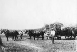 Laboureur (non identifié) avec son attelage de deux chevaux tirant une herse. La photo émane du Cercle photographique Verviétois. Elle est légendée « Sujet:Labour » et date de 1950.Grâce à la maison en arrière-plan et la bande boisée à droite, j’ai pu la localiser à Filly dans la campagne agricole située à gauche de la route qui descend vers le barrage de Nisramont. Source Jules Paquay