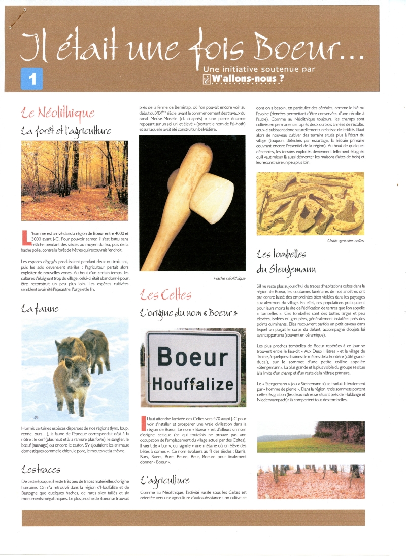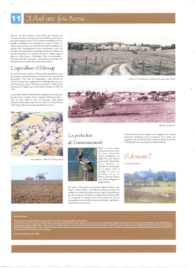 Ces panneaux ont été crées par Jean-Yves Weyckmans, de l’agence de voyages culturels « W’allons-nous ?« . La famille de Jean-Yves est originaire de Boeur et lui-même revient souvent dans la région pour le plaisir ou pour accompagner des promenades commentées.