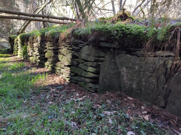 Lors de l’une de mes pérégrinations le long du ruisseau de Cowan, je tombai, pas hasard et en dehors de tous sentiers battus, sur un mur en pierre sèche.