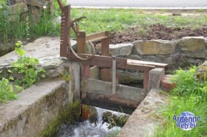 Il n’y a pas de trace de porte ou de vanne dans le barrage mais il est probable que ce genre de mécanisme, en bois, ait existé, comme ci-contre au moulin de Cherain.
