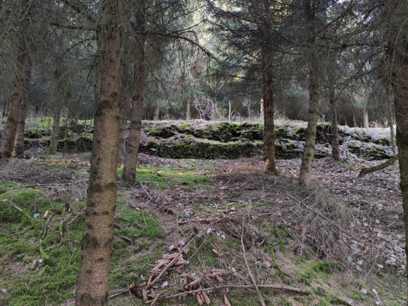 Orientées plein sud, ces terrasses sont maintenant couvertes de sapins. Ces sapins n’empêchent cependant pas de s’interroger sur la présence des dites terrasses en ces lieux reculés ainsi que sur leur importance: 5 murs de près de 100 métres de long soutenant autant de terrasses.