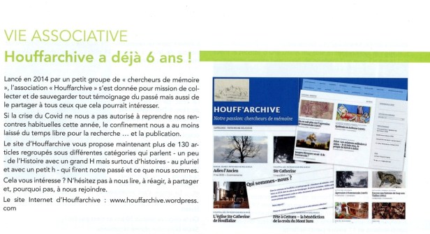 Allez, un peu de pub pour nous en cette fin d’année : voici un article paru dans le Bulletin communal n° 32 de novembre 2020.