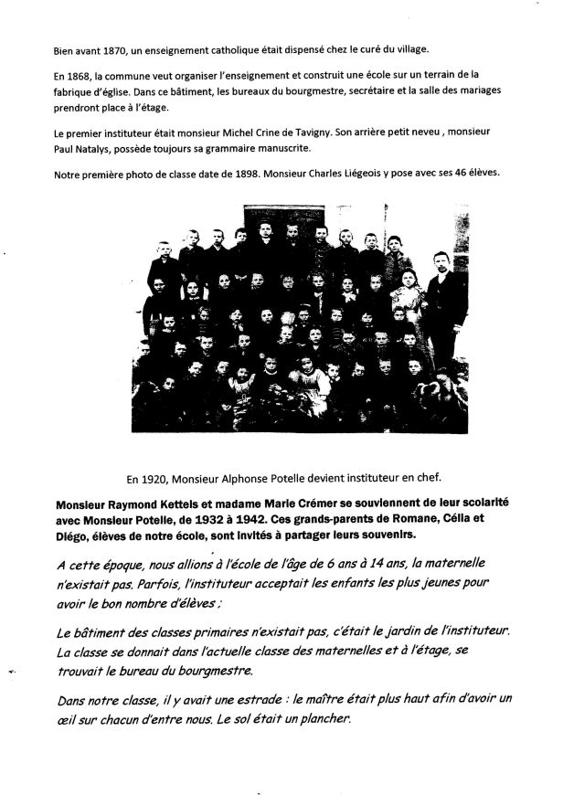 Article suivant : L’école de Tavigny, par les élèves de l’école (3)