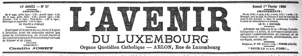 [2] Référence à une lectrice du journal participant très régulièrement aux jeux proposés par le dit-journal et signant « Exilée d’Engreux ». La phrase est incorrecte syntaxiquement. Elle est bien rédigée de la sorte dans l’article de l’Avenir du Luxembourg.