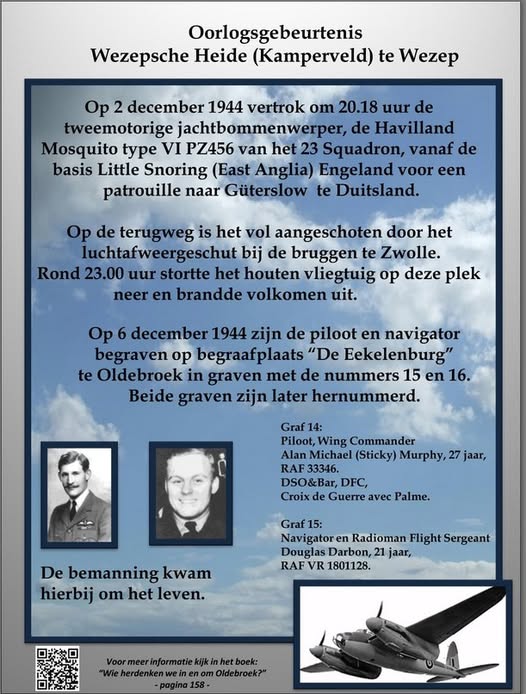 Le 6 décembre 1944, le pilote et son navigateur furent enterrés au cimetière « De Eekelenburg » à Oldebroek.