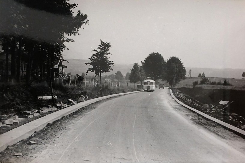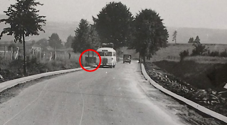 Une photo fournie par M. Pluymers pourrait bien représenter ce fortin, à côté du bus montant vers les Chèras. La photo n’est pas datée mais la chaussée est en cours de réfection et d’élargissement. Ce détail pourrait donner des indications de date.