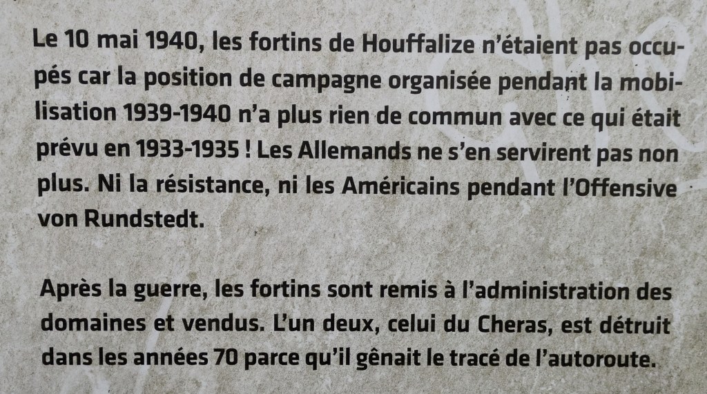 Cependant, il est certain que le fortin n’existait déjà plus lors de l’aménagement du zoning des Chèras. Une note sur le panneau touristique l’indique bien.
