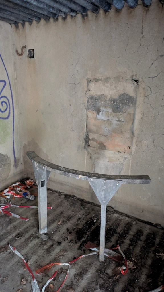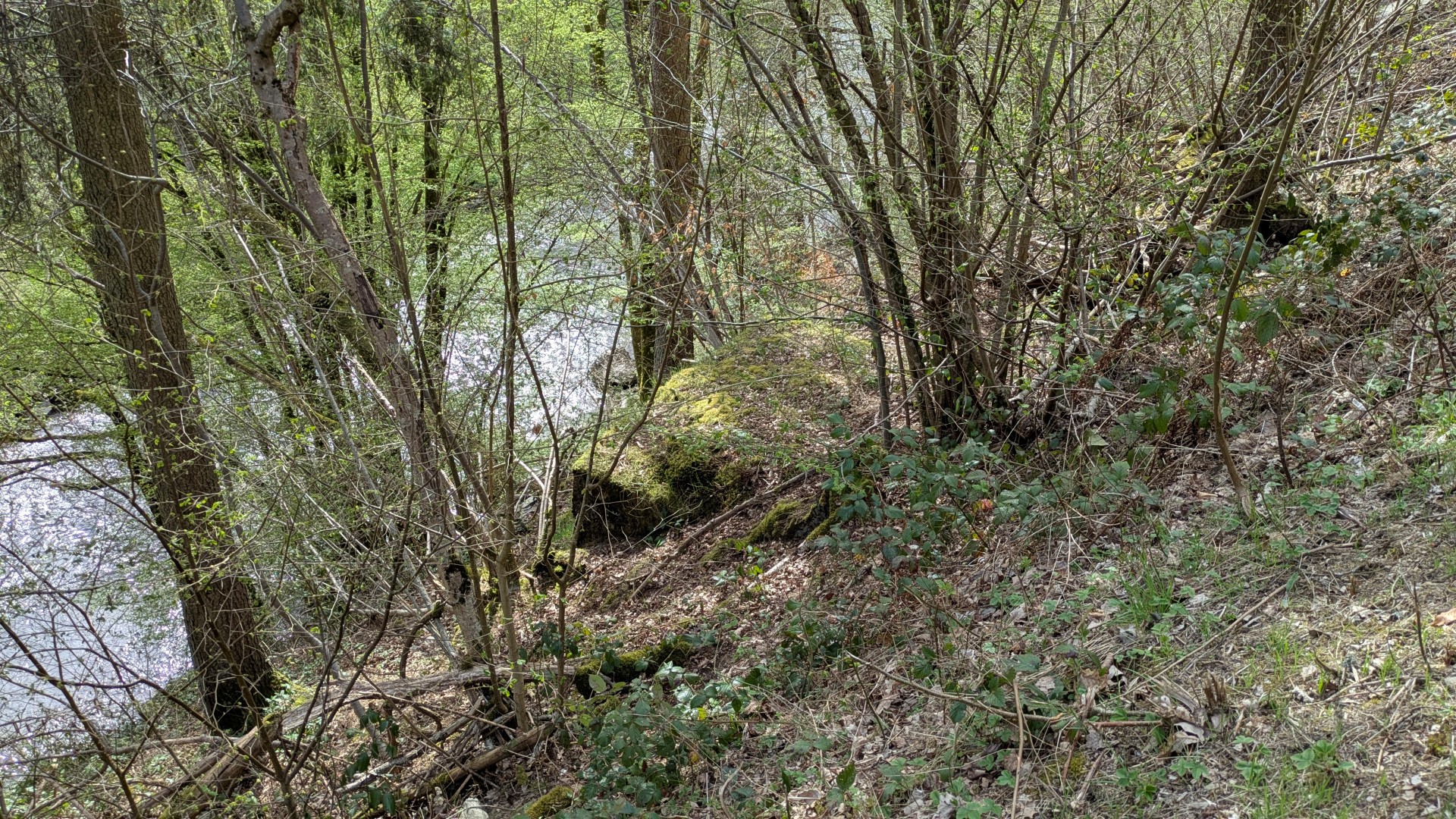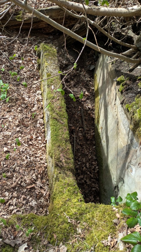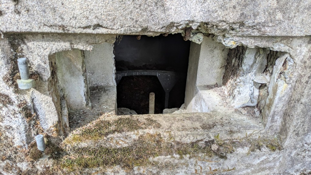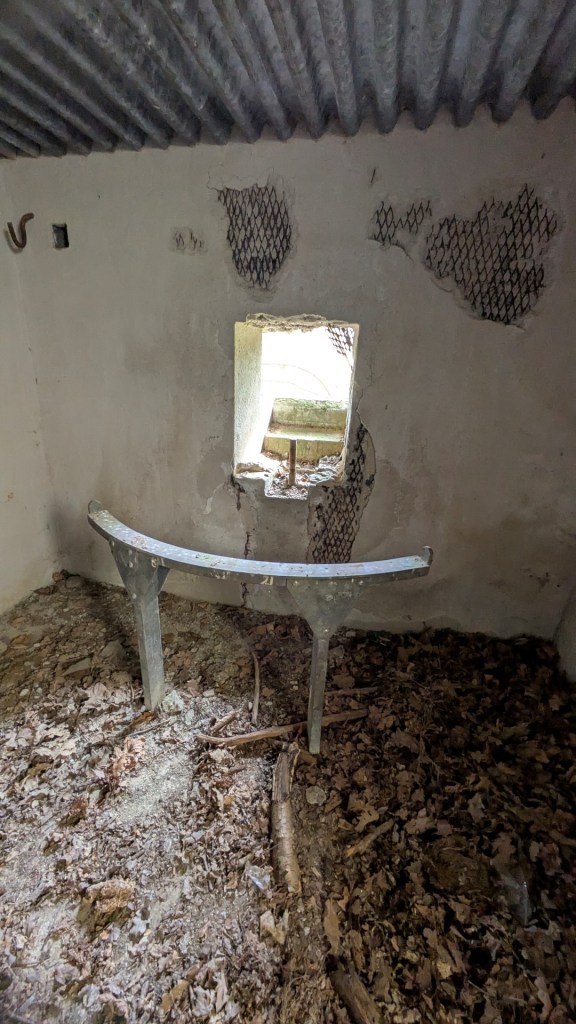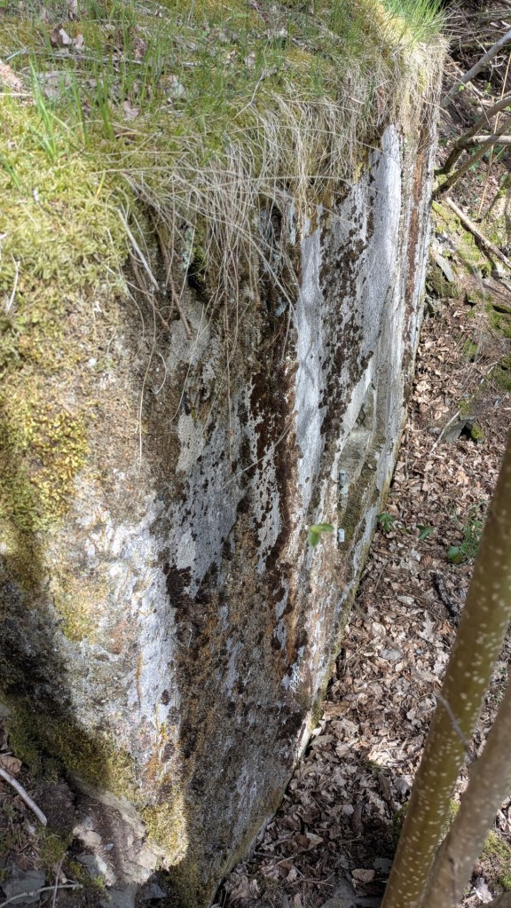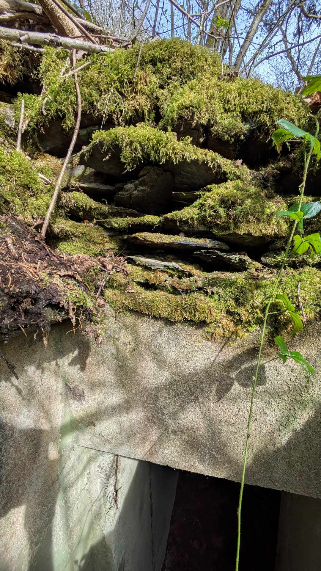 Le toit du fortin est camouflé par un empilement de pierres de schiste, disposition que nous avons vues sur au moins un autre fortin.