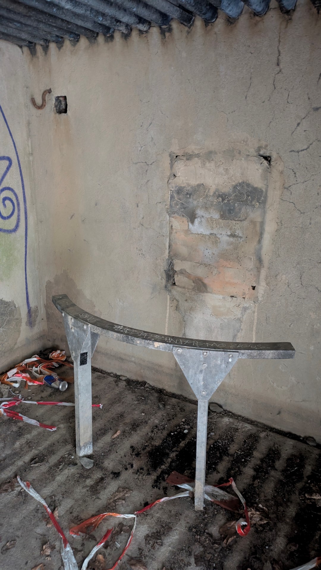L’axe de la mitrailleuse Maxim et l’affut Chambrome sont bien visibles et bien conservés.
